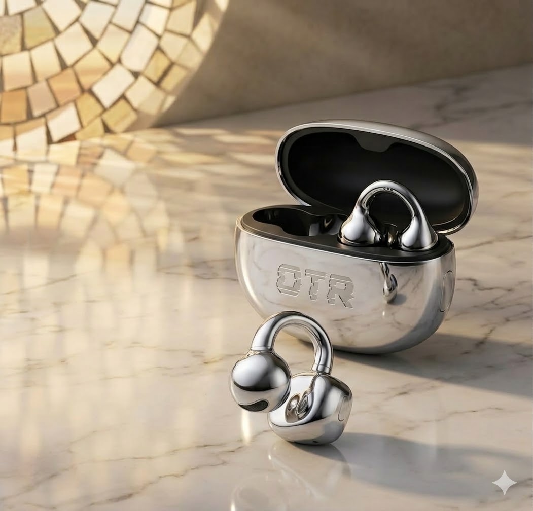 El arte de escuchar. Open-Ear Clip de cromo pulido con driver 12mm SuperBass, 4 micrófonos IA y 36 horas de batería. Comodidad sin igual.